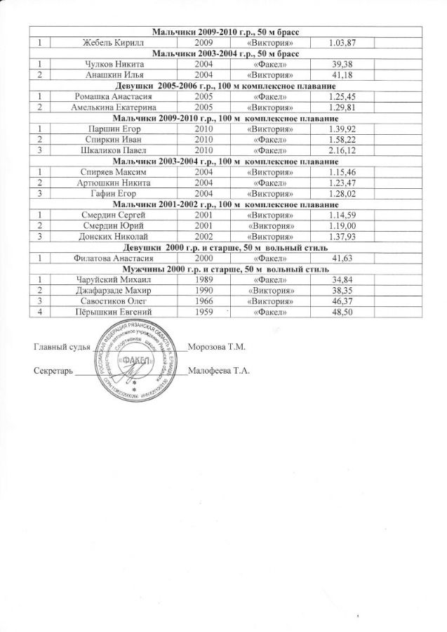 В соревнованиях приняли участие спортсмены ГАУ РО «СШ «Факел» и ГАУ РО «СШ «Виктория», а так же взрослые. Перед началом соревнований состоялся заплыв памяти учеников С.А. Морозова. В соревнованиях приняли участие более 50 человек. Победители и призёры соревнований были награждены грамотами и памятными призами.