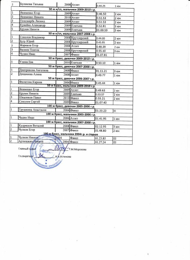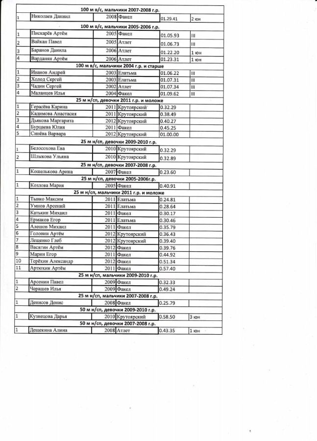 На данных соревнованиях наши спортсмены показали неплохие результаты. В числе победителей и призёров были следующие занимающиеся СШ «Факел»: Ванякина Олеся, Ромашка Анастасия, Трушкина Анастасия, Спиркин Иван, Шкаликов Павел, Веселов Илья, Чулков Егор, Николаев Даниил, Пискарёв Артём, Чулков Никита, Митина Анастасия, Катькин Михаил.