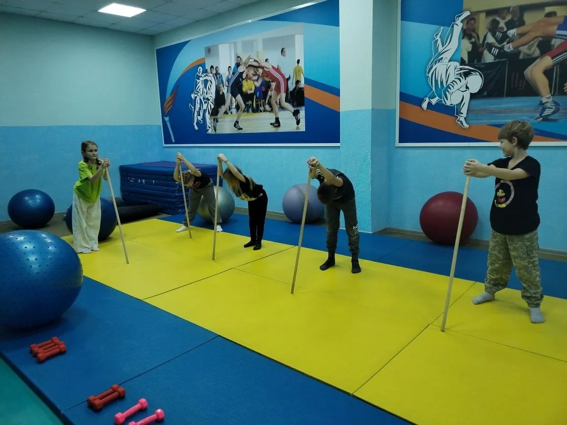 На занятиях в отделении спортивной борьбы сегодня особенное внимание уделяется гибкости. Юные спортсменки, под руководством тренера, проводят комплексную спортивную растяжку. Они выполняют разнообразные упражнения: от наклонов и выпадов до более сложных элементов, направленных на развитие эластичности мышц ног, спины и плечевого пояса. Это неотъемлемая часть их тренировочного процесса, необходимая для максимальной эффективности и безопасности на пути к спортивным успехам.